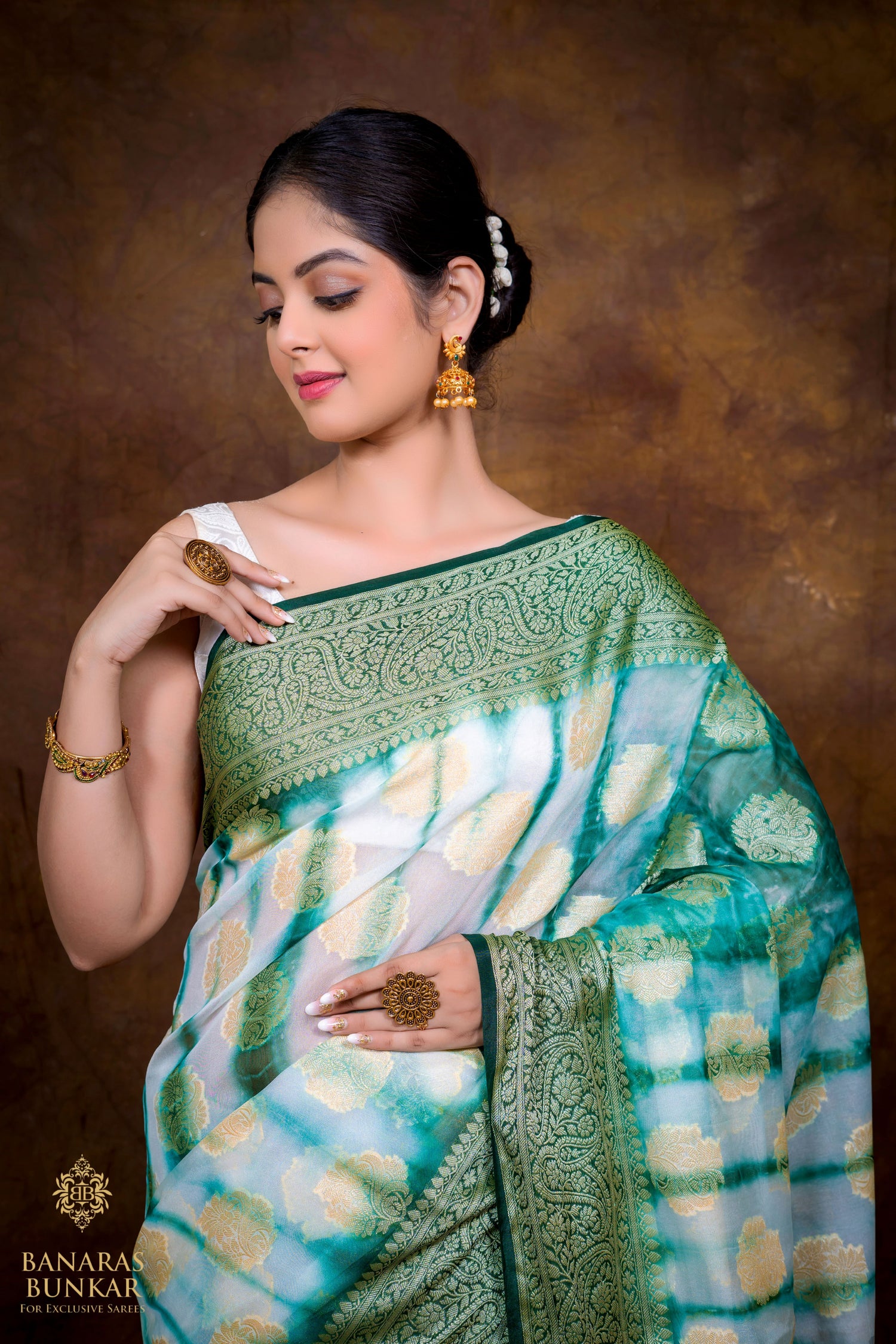Banarasi Handloom Pure Khaddi Georgette Saree with Allover Buti & Water Zari Designer Pallu