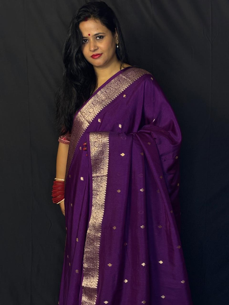Banarasi Handloom Linen silk saree allover plane with skirt Border