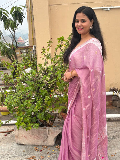Banarasi Pure Chikankari Organza Silk Saree with Allover Floral Buta Resham Embroidery