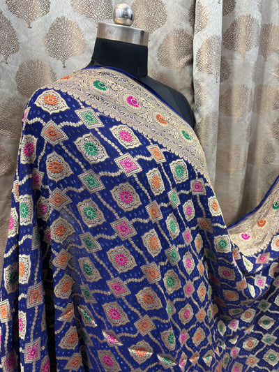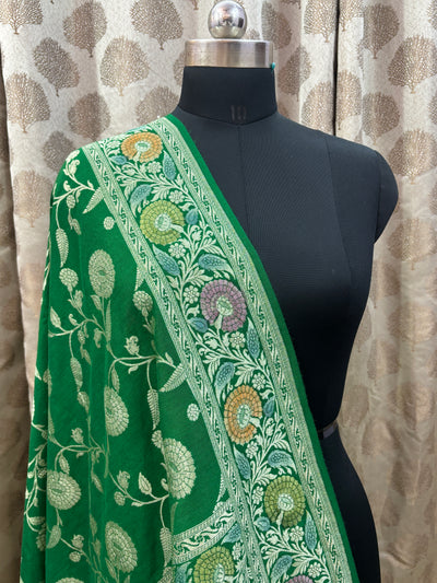 Banarasi Dupion silk Flower Jaal Buta with Skirt Border Pattern