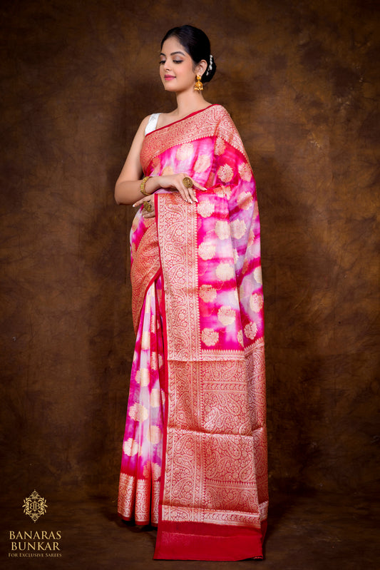Banarasi Shibori Semi Georgette silk saree buta with Equal Border