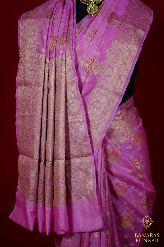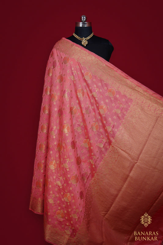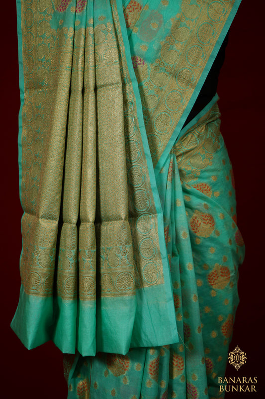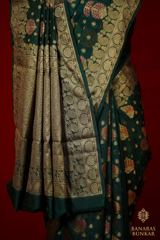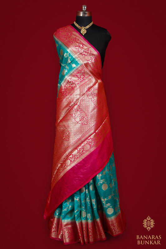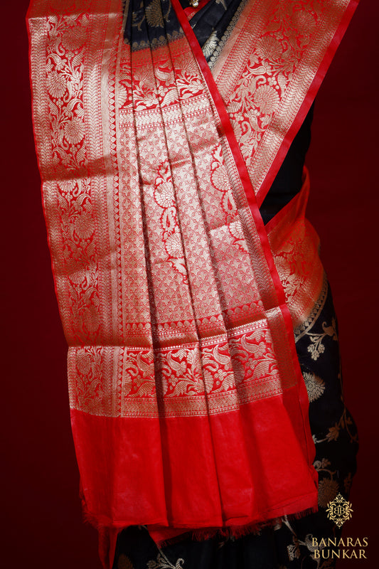 Banarasi Dupion silk Saree Flower Jaal Buta with Skirt Border Pattern