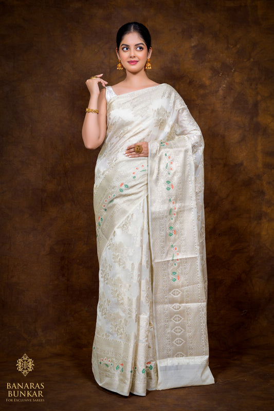 Banarasi handloom cotton silk saree allover flower Buti design with skirt Border