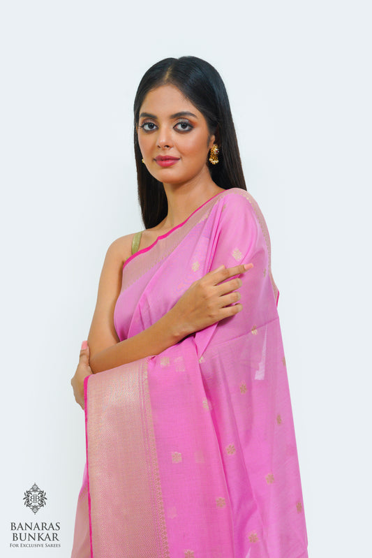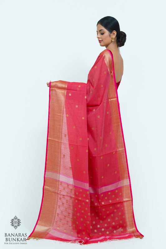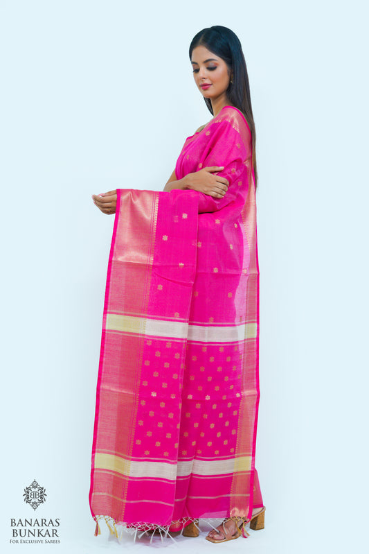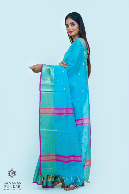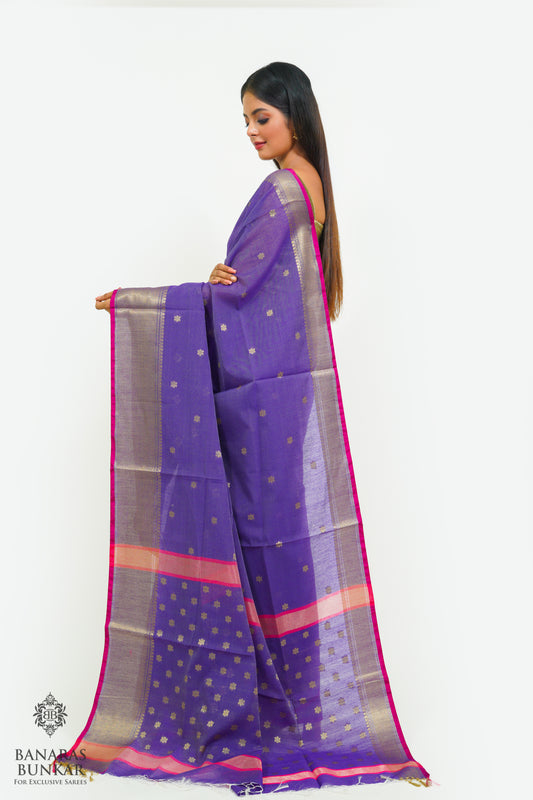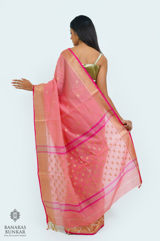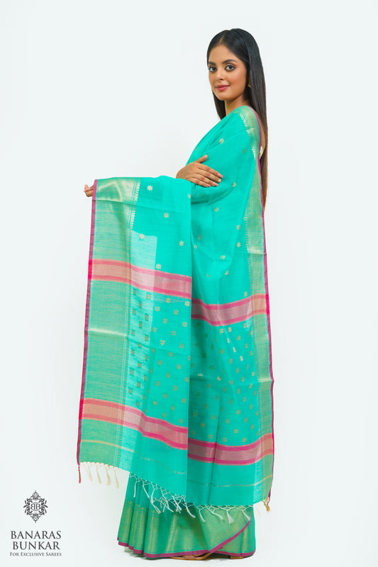 Banarasi Handloom Cotton silk saree allover Buti design weaved at Gold zari