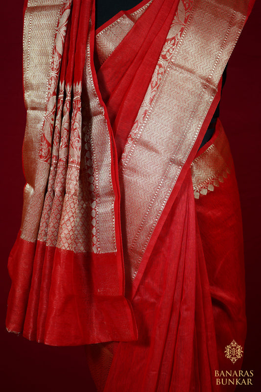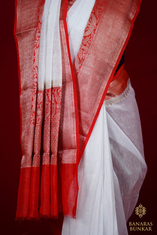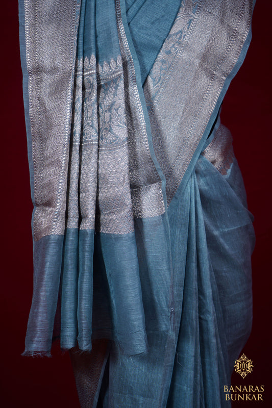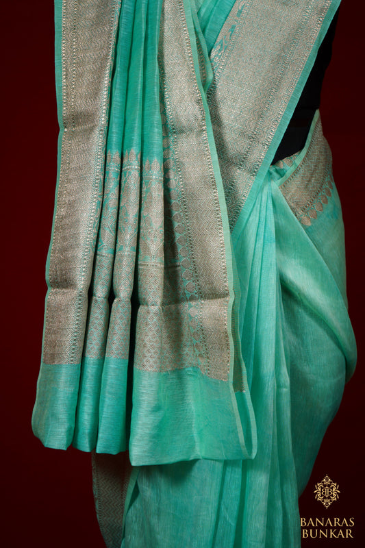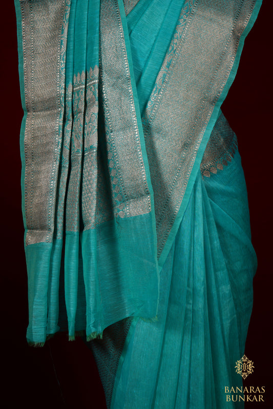 Banarasi Handloom Linen silk saree allover plane with skirt Border
