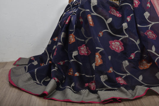 Banarasi Pure Khaddi Georgette silk saree Flower Jaal Pattern