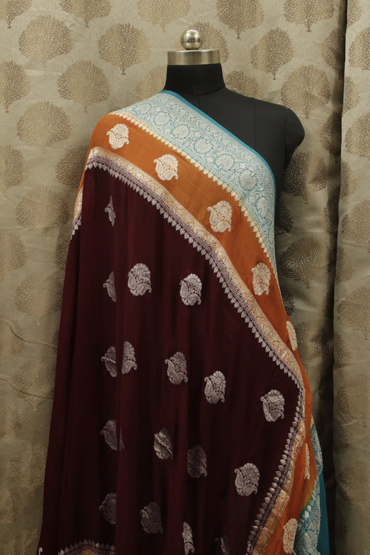 meroon Banarasi Pure Kaduwa Georgette Chiffon silk saree