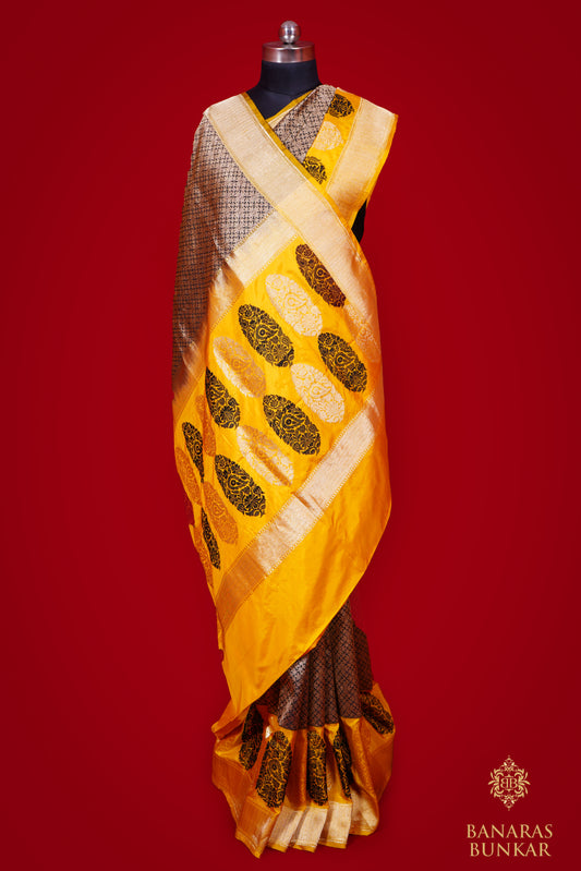 Banarasi semi Tapeta silk saree weaved at copper zari