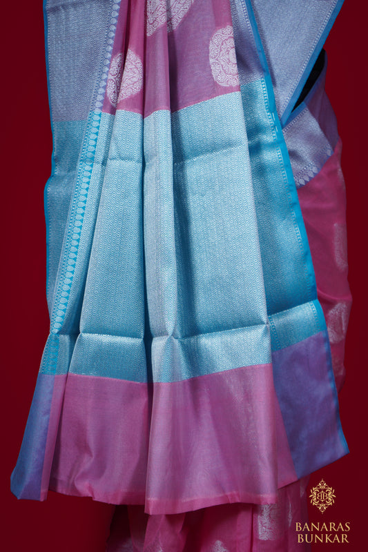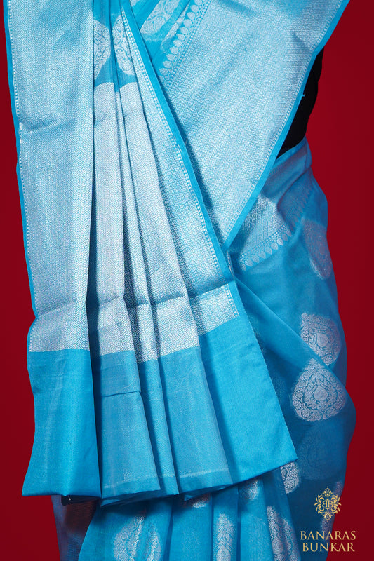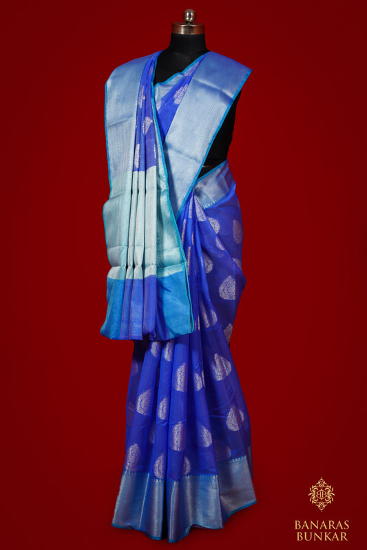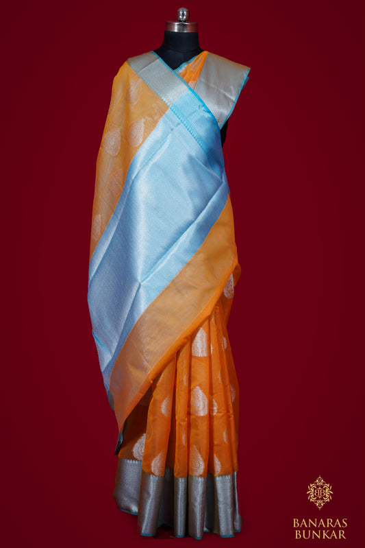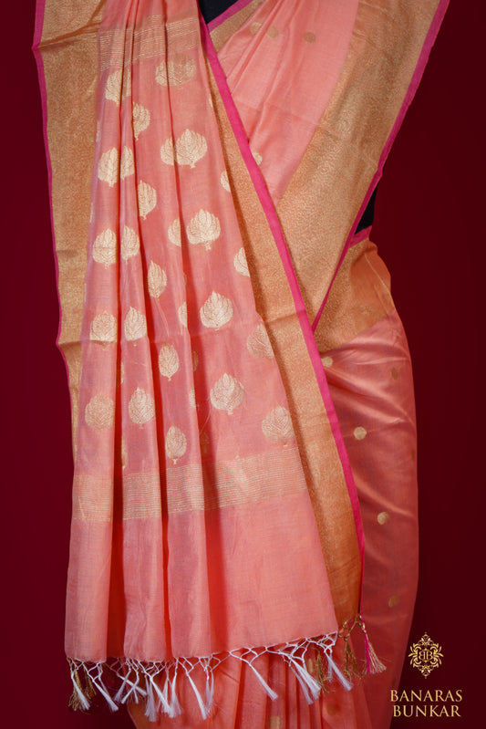 Banarasi Handwoven cotton silk saree allover paan Buta with iskat border