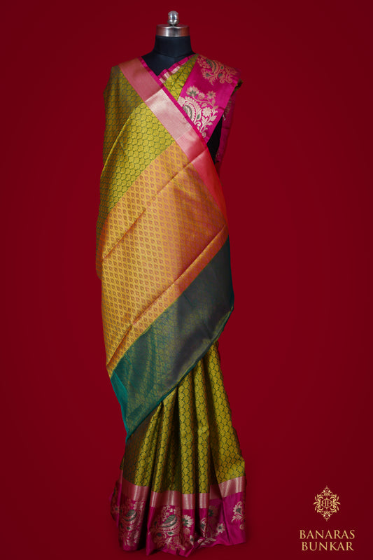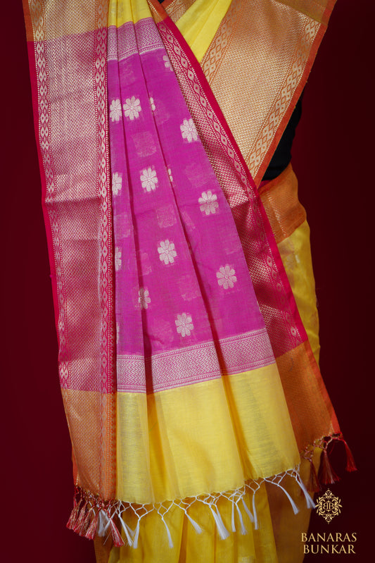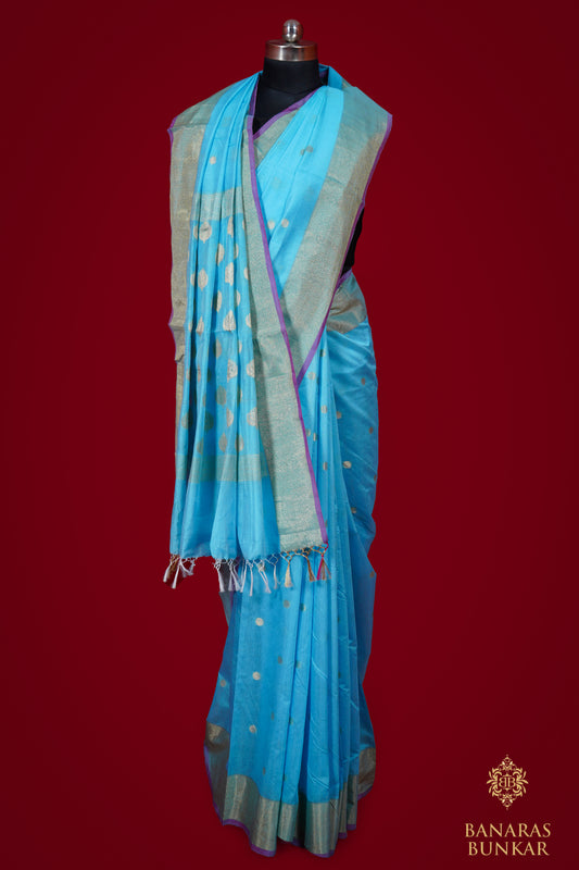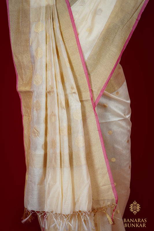 Banarasi Handwoven cotton silk saree allover Buti Weaved at gold zari