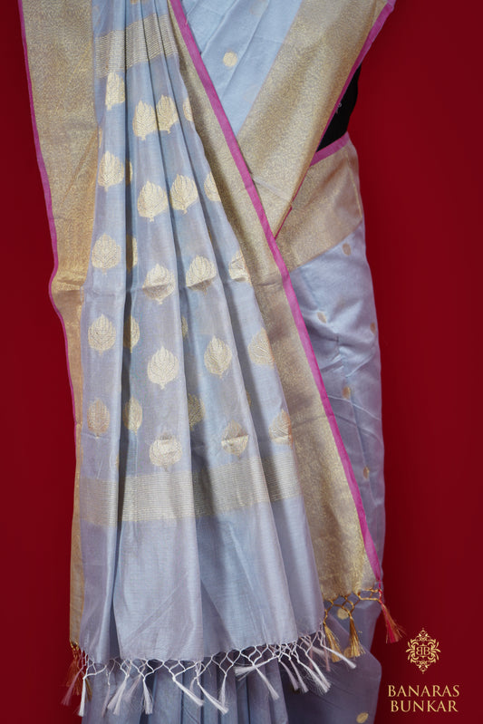 Banarasi Handloom Cotton silk saree allover Buti design weaved at Gold zari