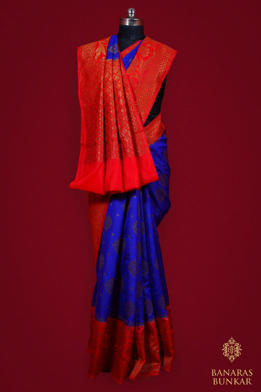 Banarasi Dupion silk Saree Flower Jaal Buta with Skirt Border Pattern