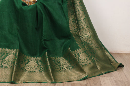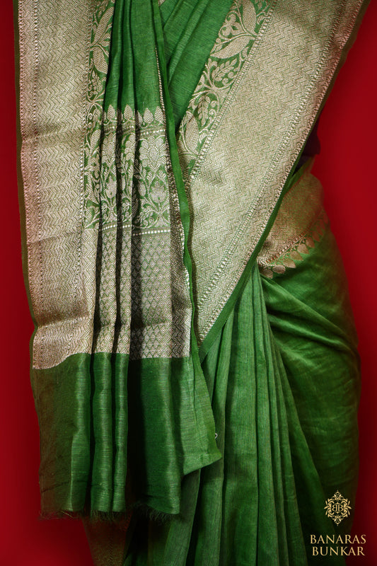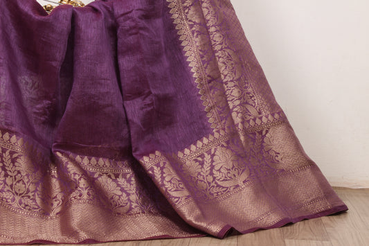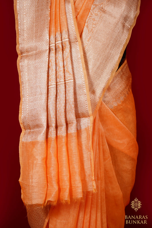 Banarasi Handloom Linen silk saree allover plane with skirt Border