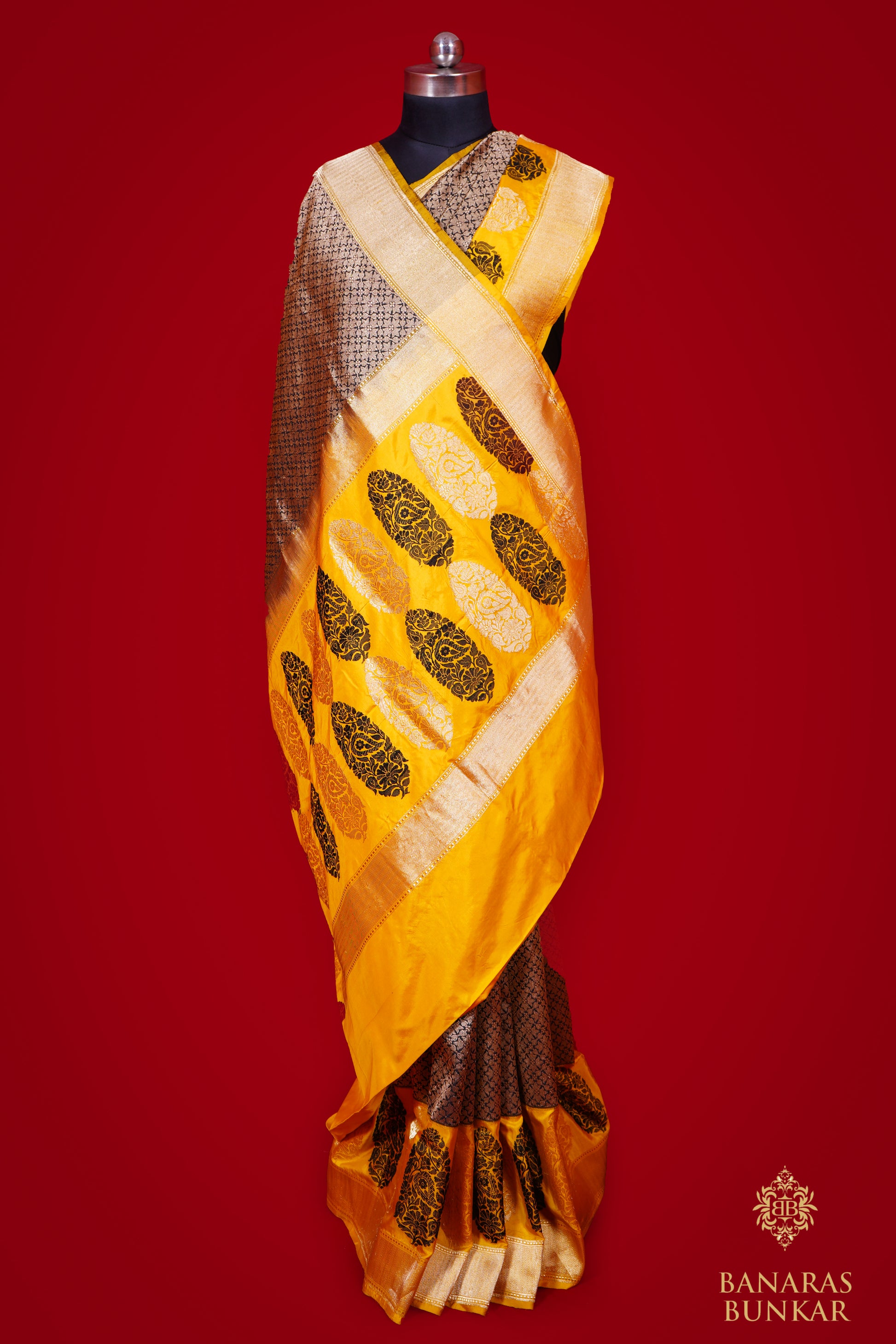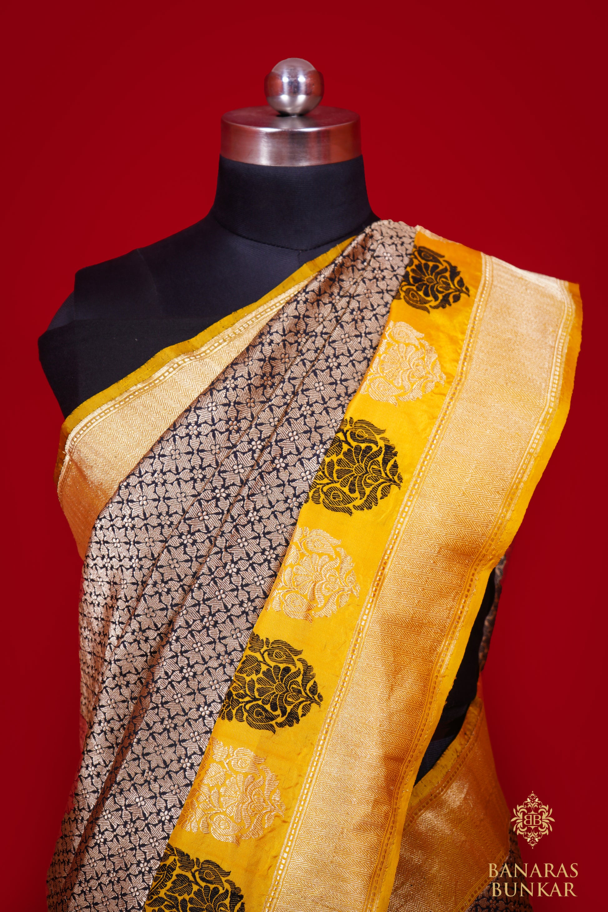 Color :- stunning shade of Black with a contrast Mustard border and aanchal