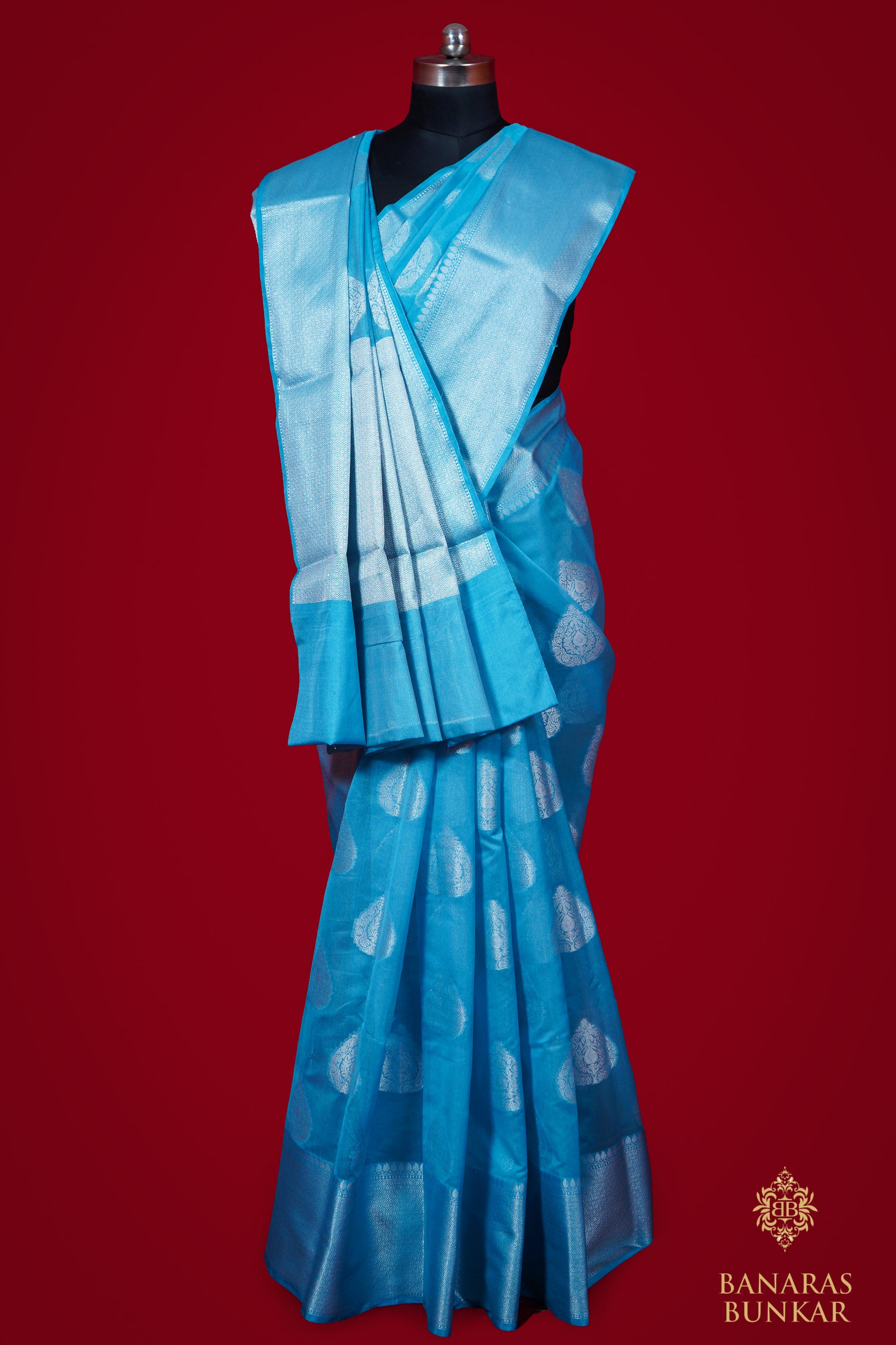 Banarasi semi kataan Tapeta silk saree allover Buti design with equal T