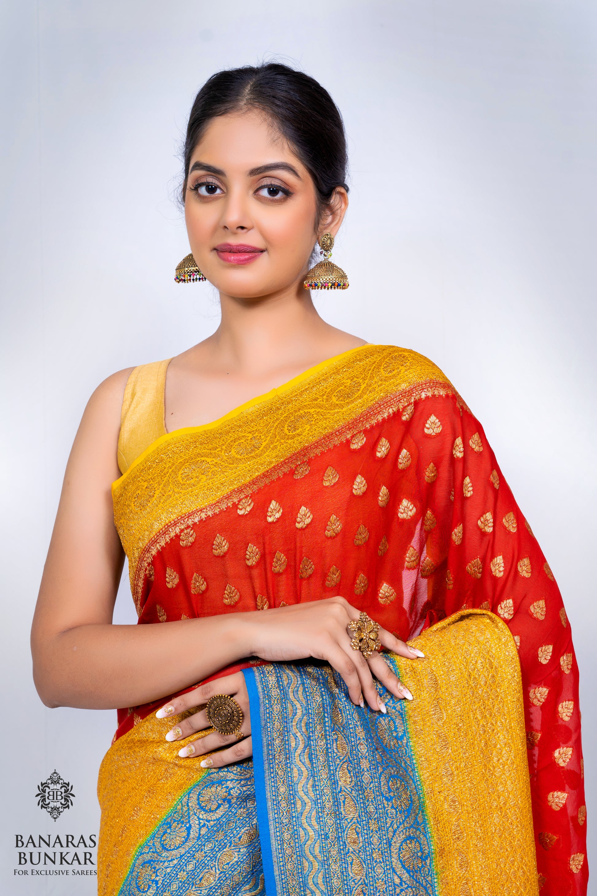 Banarasi Pure Khaddi Georgette silk saree Buti Pattern with 3D Skirt Border
