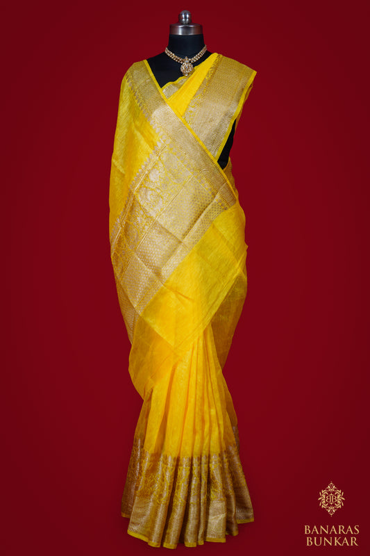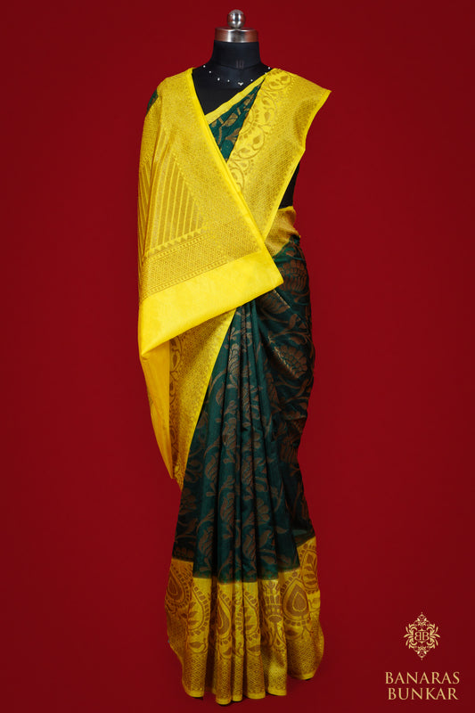Banarasi Semi Dupion silk Flower Jaal Buta with Skirt Border Pattern