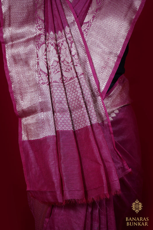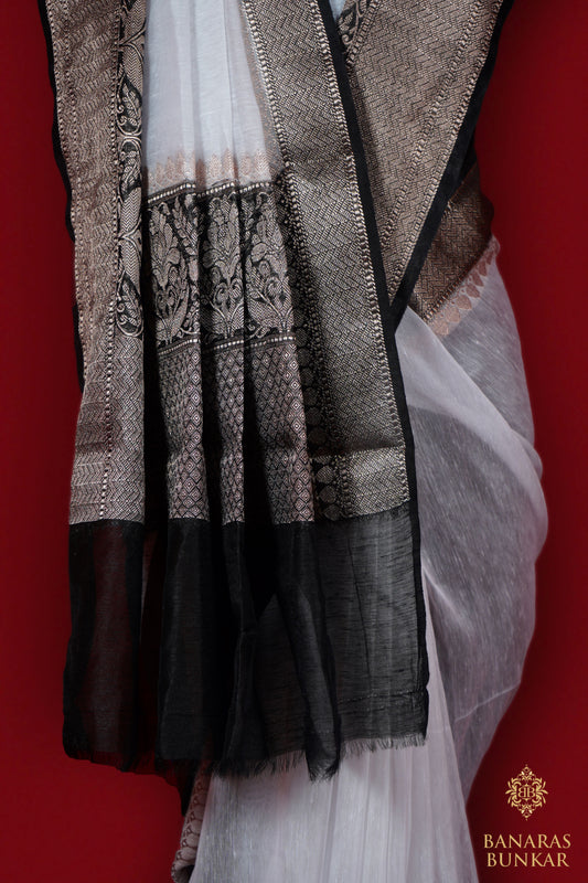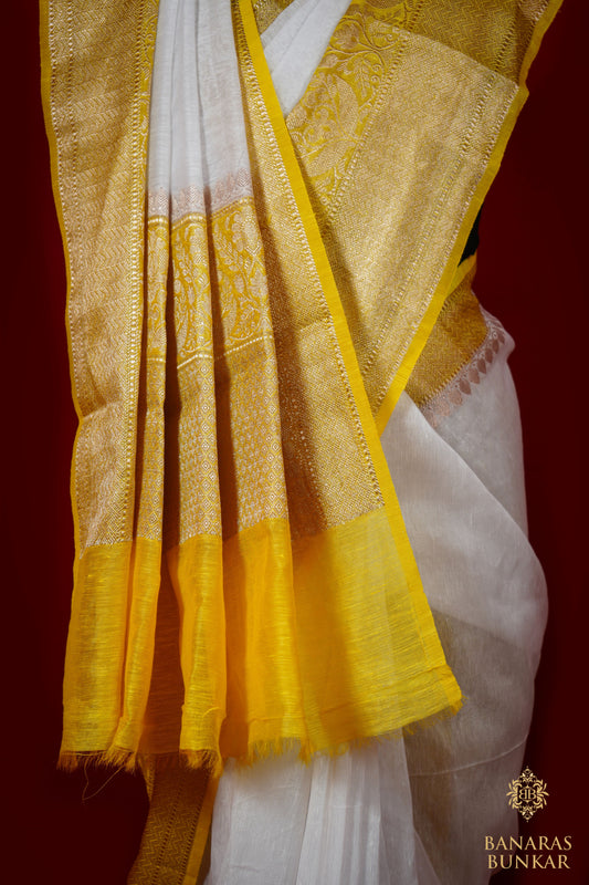 Banarasi Handloom Linen silk saree allover plane with skirt Border