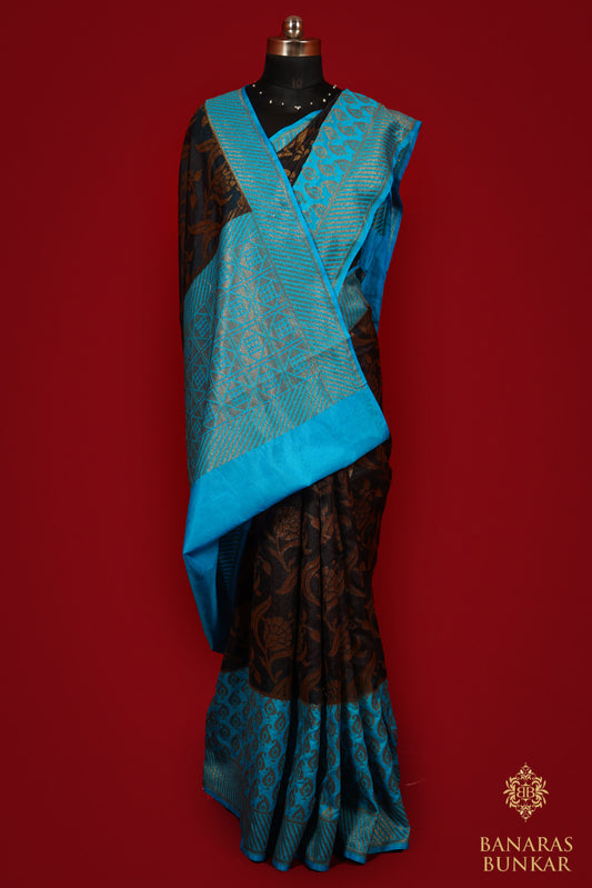 Banarasi Dupion silk Flower Jaal Buta with Skirt Border Pattern
